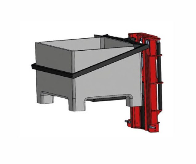 Possui sistema de tombador de bin frontal com garfos de 6,5cm de altura ideal para bin plásticos ou de madeira.
