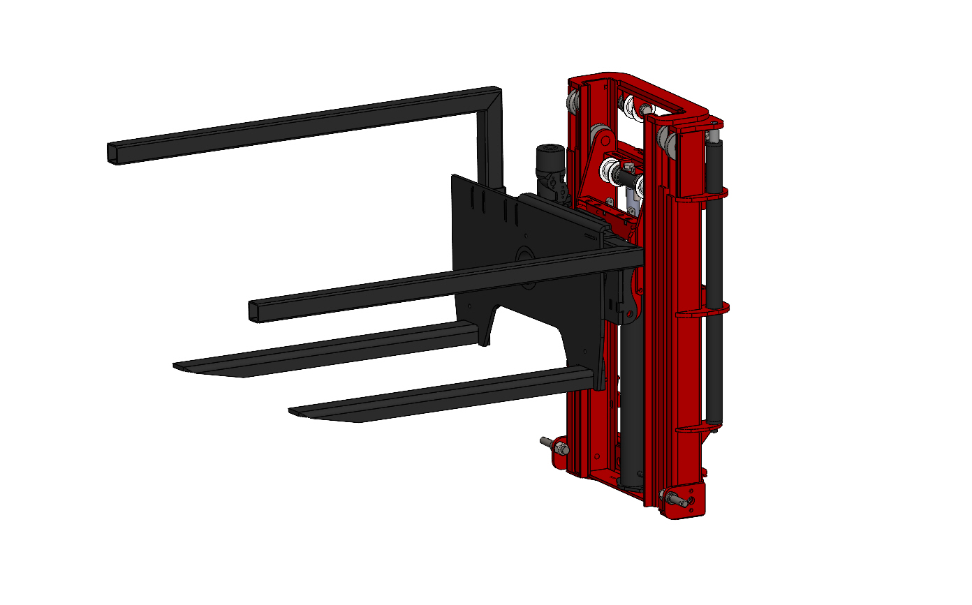 Possui sistema de garfo com deslocador lateral e opcional trava hidráulica ideal para bin plásticos ou de madeira.