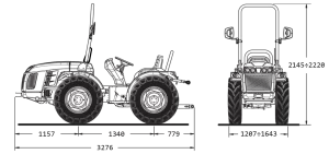 O elevador hidráulico traseiro, por dois cilindros externos, é configurado com uma conexão de três pontos cat. 1. Os braços de elevação são equipados com conexões normais, engates rápidos ou engates rápidos com ajuste lateral angular do gancho.