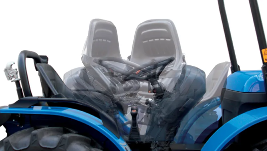Disponível como opcional, o assento reversível do motorista permite trabalhar profissionalmente com o implemento posicionado à frente.