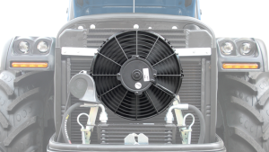 O SCS™ mantém o radiador e as grades de admissão do capô do motor constantemente limpos de poeira e detritos levantados durante o trabalho, evitando superaquecimento perigoso.